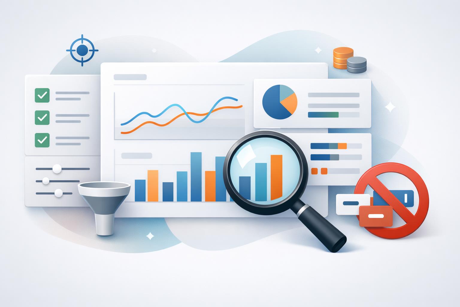 Самые ценные минусы появляются не “из головы”, а из статистики. Рабочая привычка: открывать отчет по поисковым запросам, сортировать по показам/кликам и минусовать то, что тратит деньги без шансов на конверсию.